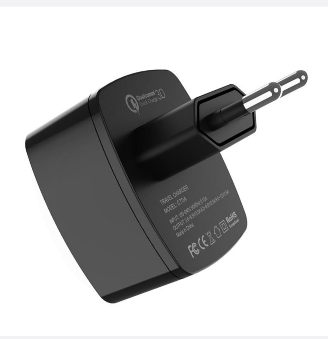 C70A Cutting-edge wall charger head USB port EU plug QC3.0 / QC2.0 FCP AFC support multiple circuit protection