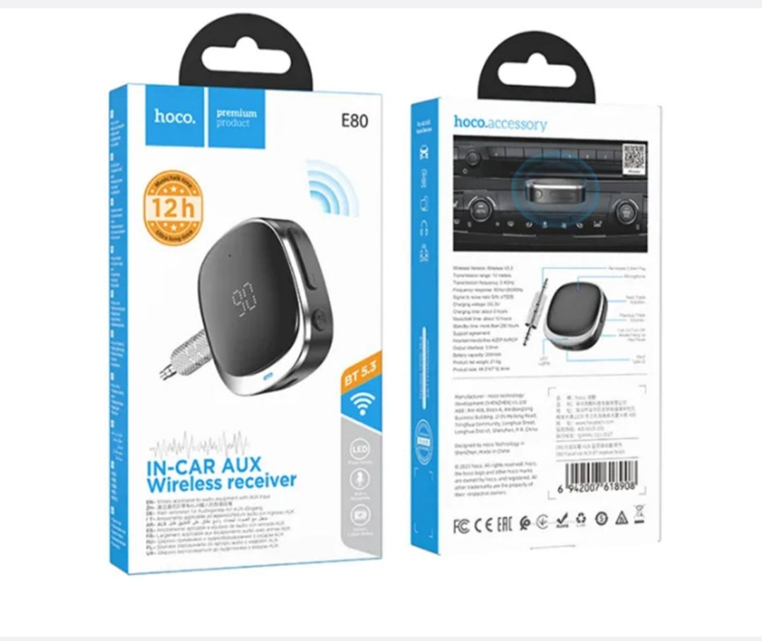 1 X Hoco E80 Bluetooth V5.3 Car Receiver Adapter Transmitter 3.5mm AUX Jack