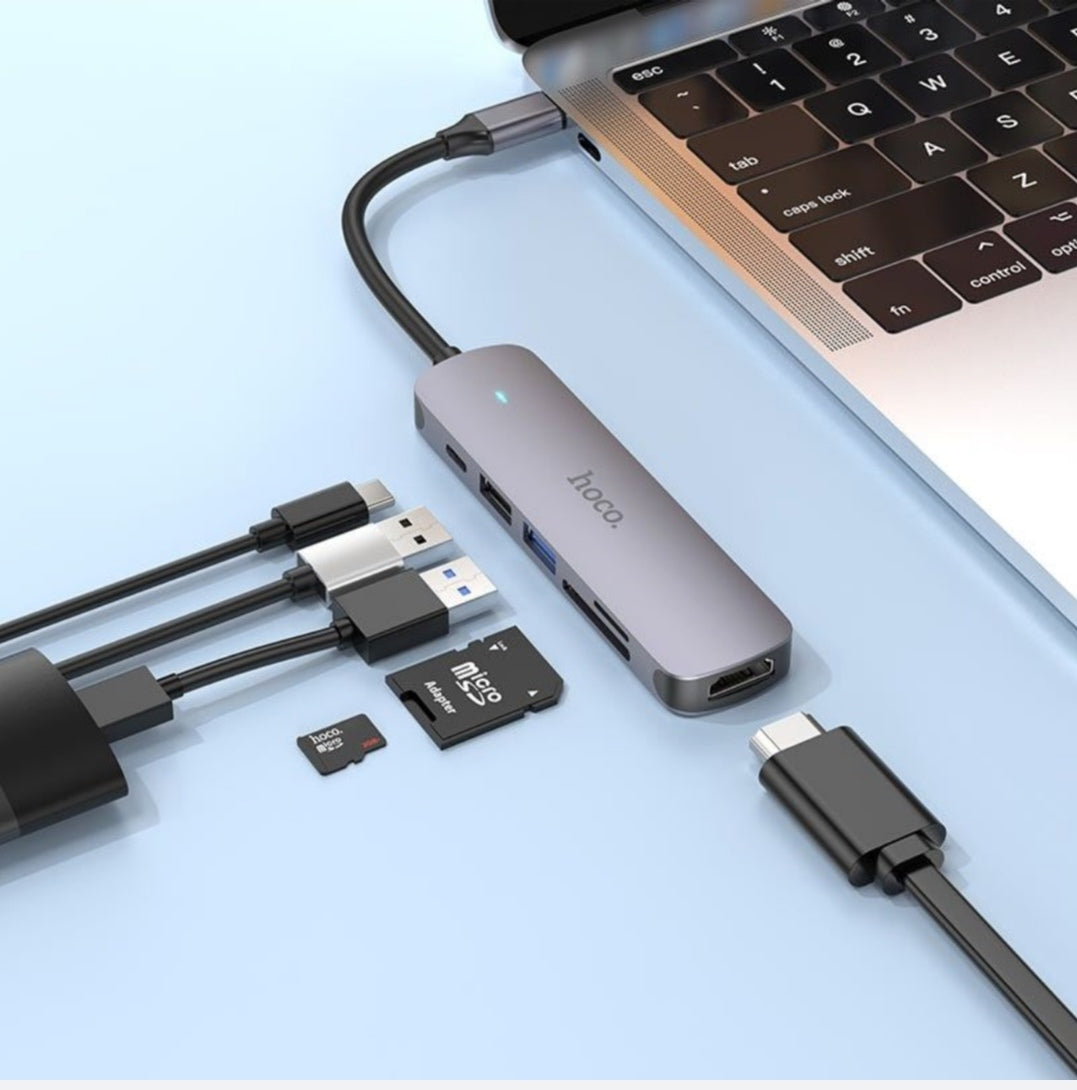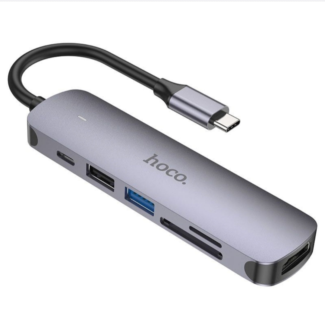 Type-C 6 in 1 Multifunctional Hub Adapter Hoco HB 28 100W PB